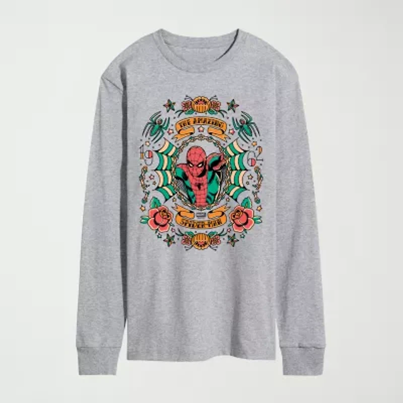 Novelty Mens Crew Neck Long Sleeve Regular Fit Marvel Spiderman Graphic T-Shirt