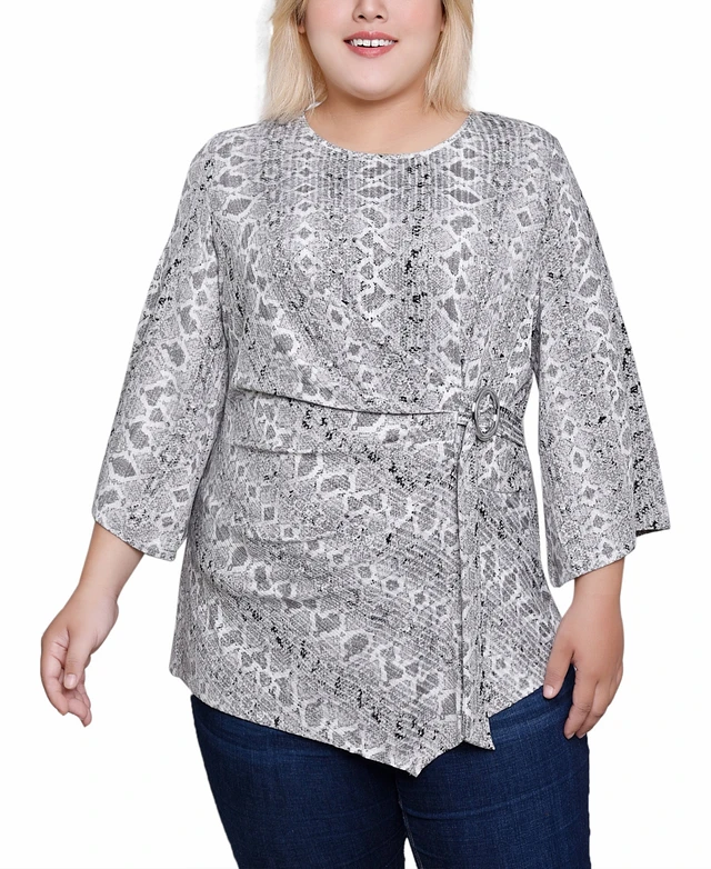 Ny Collection Plus Size 3/4 Sleeve Pleat-Waist Top