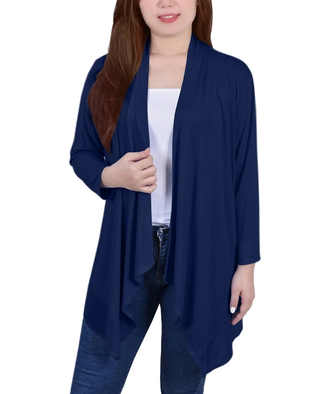 Ny Collection Women's 3/4 Sleeve Sharkbite Hem Cardigan