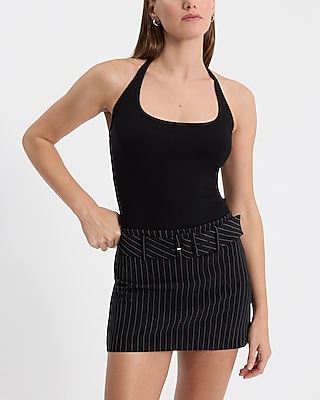 Ribbed Fitted Halter Scoop Neck Bodysuit