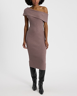 Ribbed Off The Shoulder Midi Sweater Dress