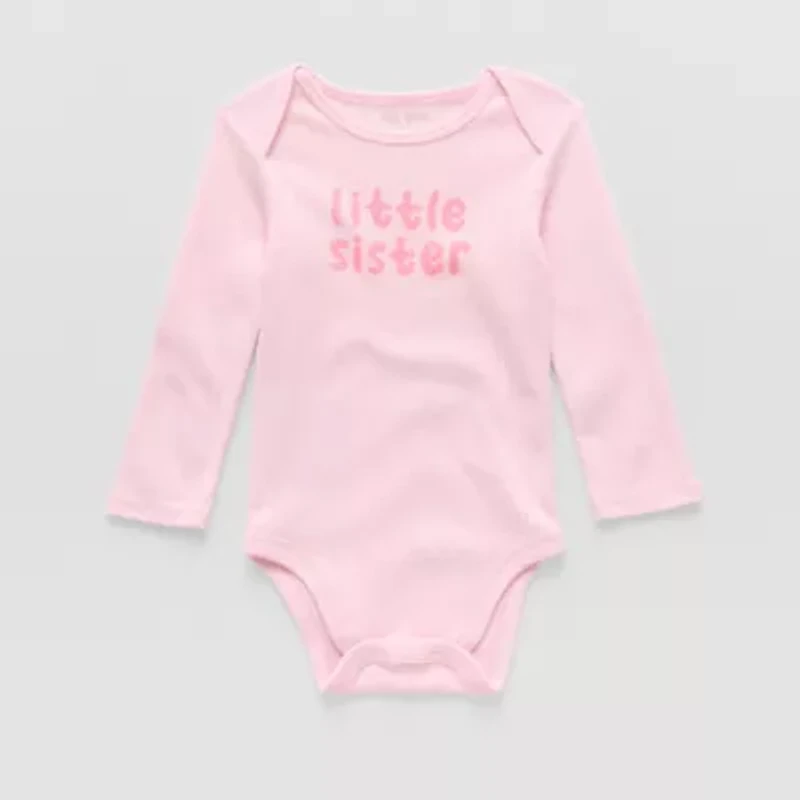 Okie Dokie Baby Girls Round Neck Long Sleeve Rib Bodysuit