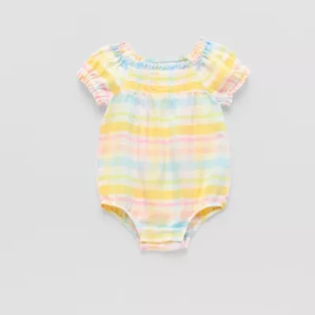 Okie Dokie Baby Girls Short Sleeve Plaid Romper
