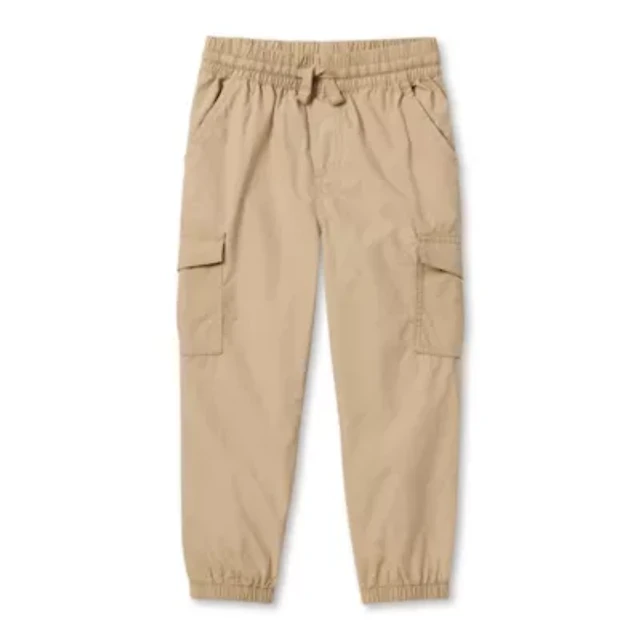 Little Boys Drawstring Waist Zip Cargo Joggers, Khaki, Size 5-6