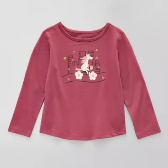 Okie Dokie Toddler & Little Girls Round Neck Long Sleeve Regular Fit Graphic T-Shirt