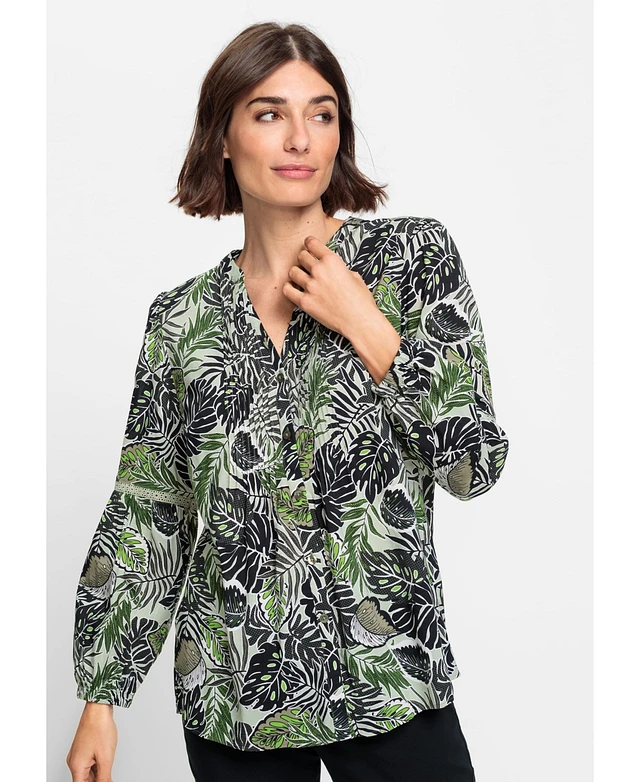 Olsen Women's Cotton Viscose Leaf Print Tunic Shirt