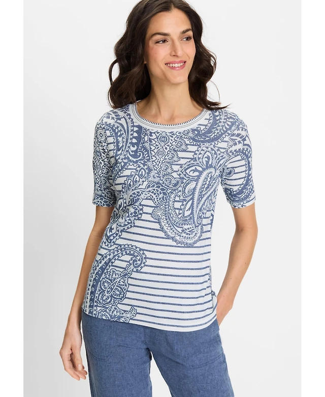 Olsen Women's Paisley Denim and Stripe T-Shirt