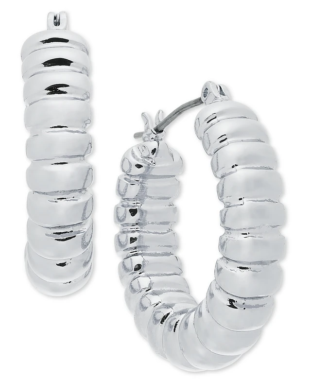 On 34th Small Silver Tone Textured Hoop Earrings, Macy's Exclusive