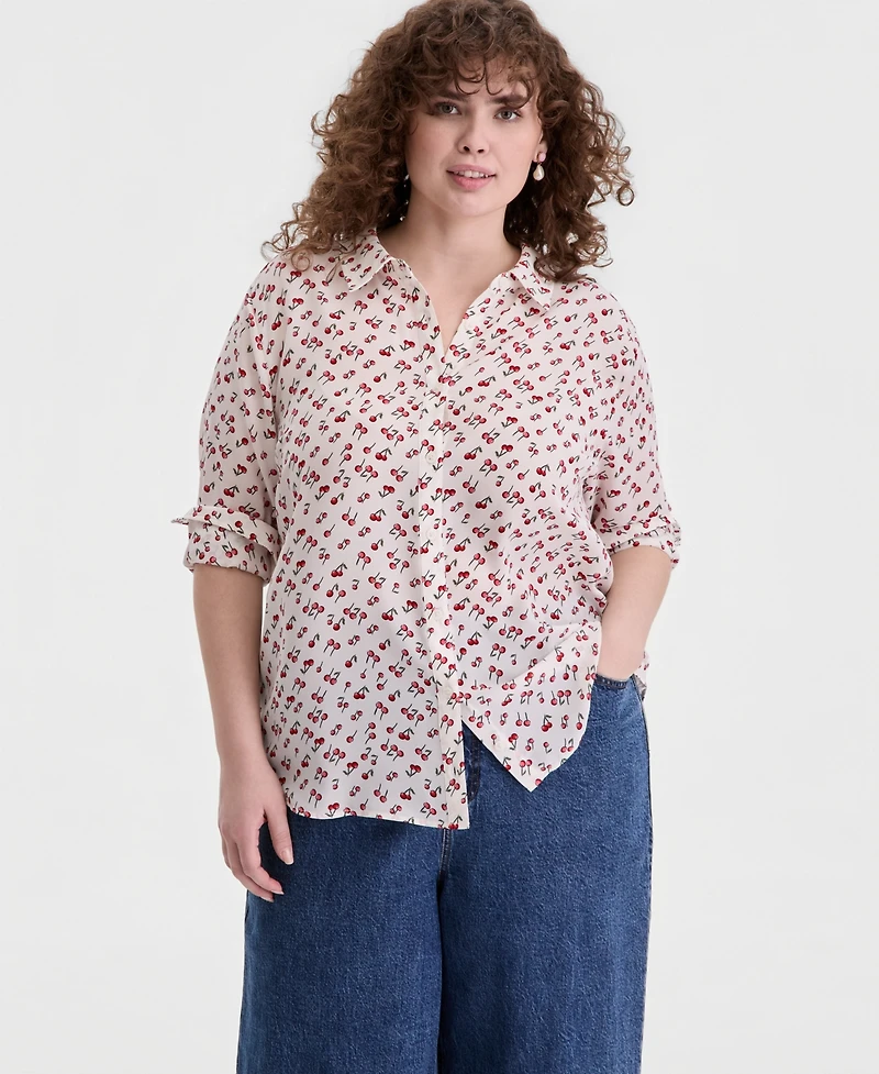 On 34th Trendy Plus Size Cherry Print Silky Shirt, Macy's Exclusive