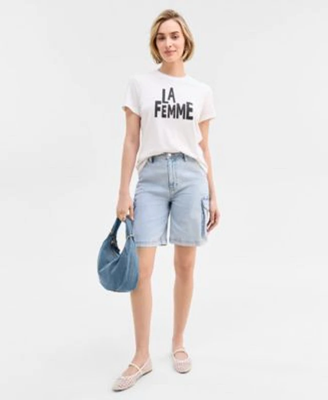 On 34th Womens La Femme Crewneck T Shirt Denim Bermuda Shorts Farroh Flats Harlowwe Bag Exclusively At Macys