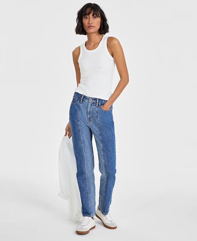 On 34th Women's Two-Tone Straight-Leg Jeans, Created for Macy's