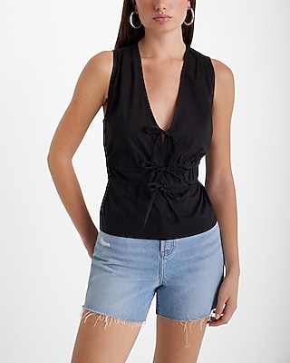 Textured V-Neck Tie Front Tank