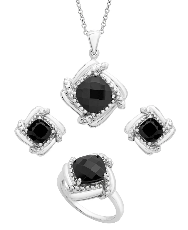 3-Pc. Set Onyx & Diamond Accent Pendant Necklace, Ring and Stud Earrings 14k Gold-Plated Sterling Silver (Also Available Silver)
