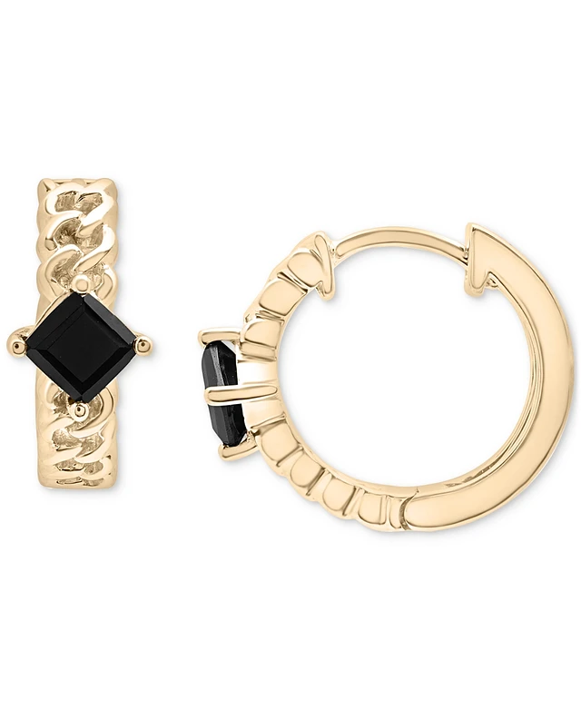 Onyx Curb Link Small Hoop Earrings in 14k Gold-Plated Sterling Silver, 0.625"