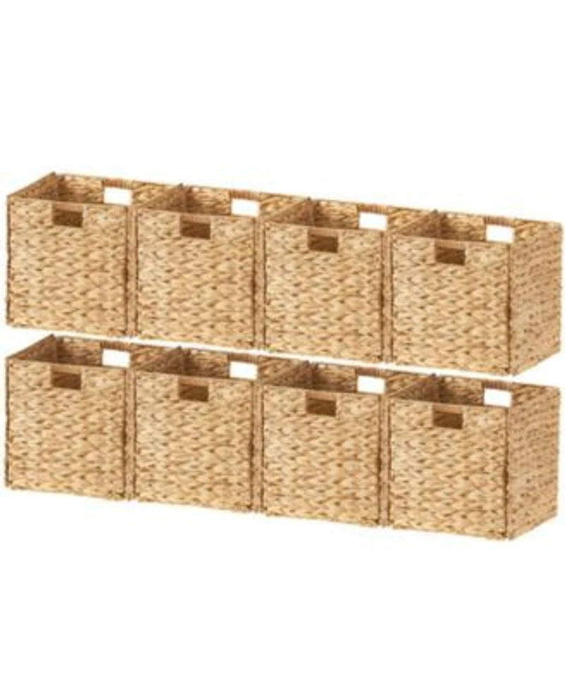 Ornavo Home Set of 8 Water Hyacinth Storage Cube Bin Basket