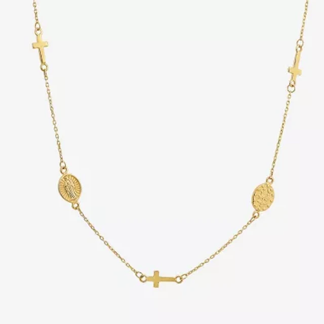Our Lady Of Guadalupe Miraculous Medal Womens 14K Gold Cross 16 Inch Pendant Necklace