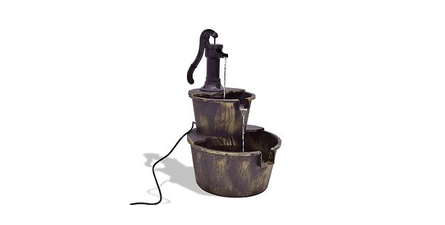LuxenHome Rustic Resin Pots and Posts Outdoor Fountain