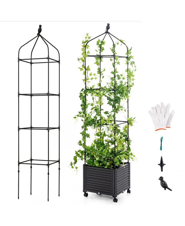Raised Garden Bed Wooden Elevated Planter Box with Lattice Trellis