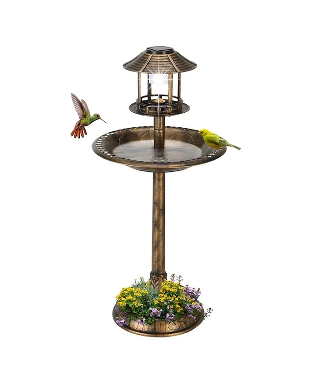 3-In-1 Pedestal Bird Bath with Solar Light Feeder & Flower Planter