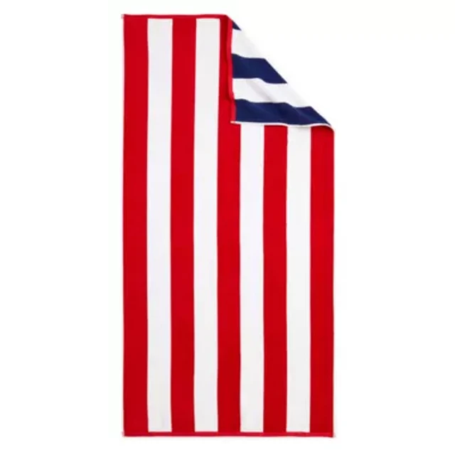Outdoor Oasis Cabana Stripe Red & Navy Beach Towel