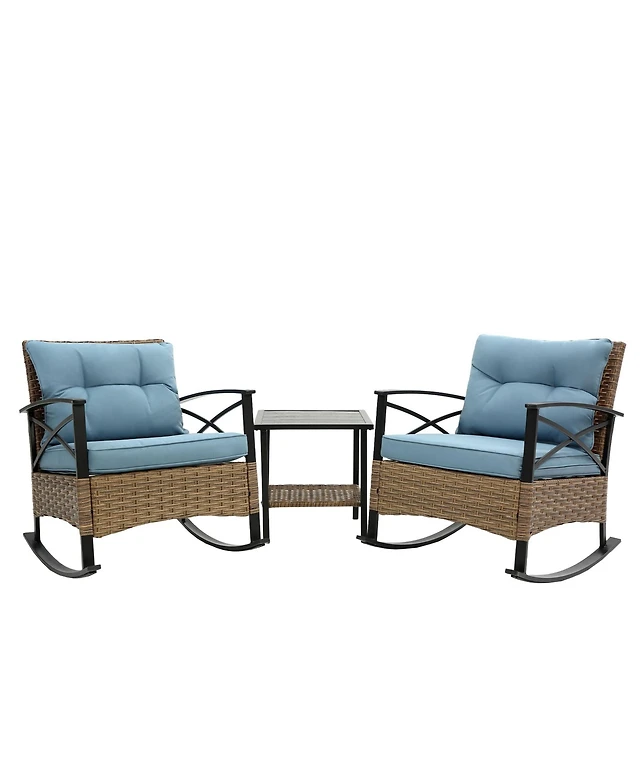 3PC Patio Rattan Conversation Set Rocking Chair Cushioned