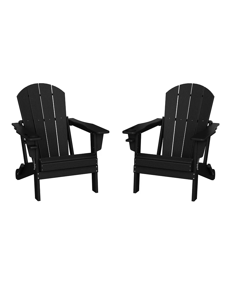 Savor golden hour on your porch with our thoughtfully designed Set of Two Outdoor Foldable Adirondack Chairs with Cup Holder and phone slot. Crafted from durable, all-weather Hdpe resin with Uv and fade-resistant color with a charming wood-like pattern, this chair brings lasting style to your outdoor space. Maximize your patio with its clever folding design for effortless storage. Featuring a built-in cup holder for your favorite beverage and a convenient phone slot, it keeps everything you need within easy reach. The gently inclined seat and curved backrest offer exceptional comfort for relaxed evenings. Built to endure, its thick Hdpe slats and reinforced rail brace ensure lasting durability. Bring effortless comfort and modern charm to your backyard retreat.