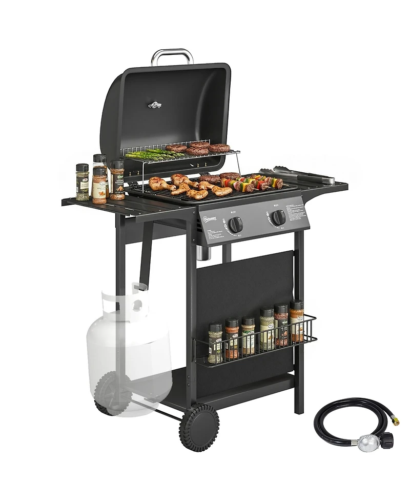 Outsunny 2 Burner Propane Gas Grill, 18000 Btu Bbq Grill with Wheels,