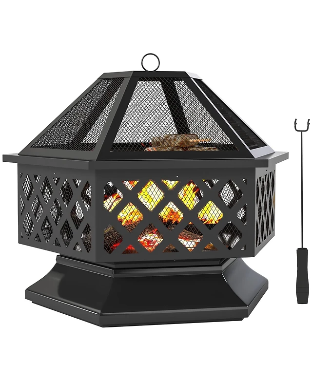 Outsunny Fire Pit with Spark Screen and Poker, 18" Wood-burning Bowl,