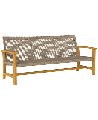 Outsunny 3 Seater Patio Sofa, Wicker Couch with Cushions, Pillows,