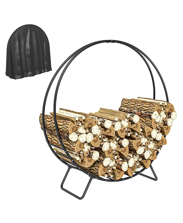 Outdoor Heavy-Duty Steel Firewood Log Hoop Storage Rack with Weather-Resistant Pvc Log Hoop Cover