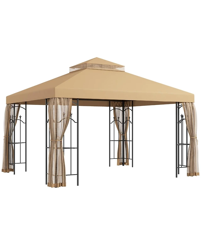 Outsunny 10' x 12' Patio Gazebo with Netting and 2 Tier Roof, Gray