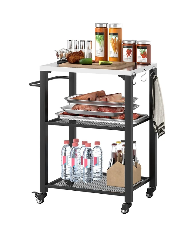 Outsunny Movable Stainless Steel 3-Shelf Outdoor Grill Cart w/ Side Table
