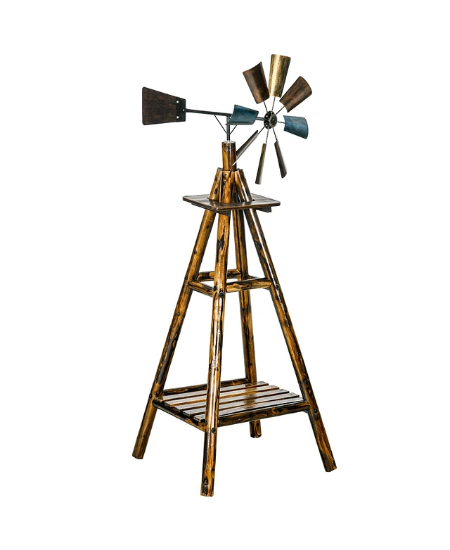 Outsunny Windmill Weathervane with Bottom Shelf, Weather Vane, Stained Wood