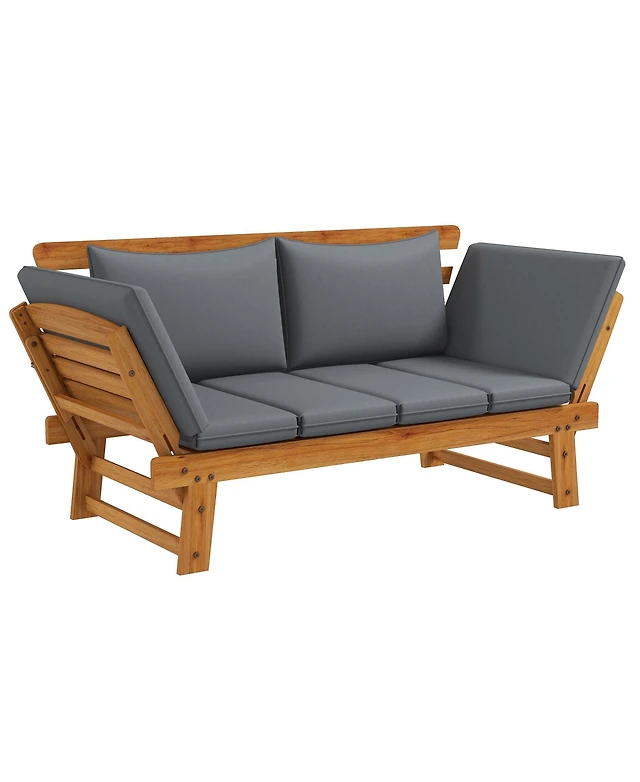 Outsunny Wooden Garden Bench for Outdoor w/ Cushions, Patio Loveseat, Gray