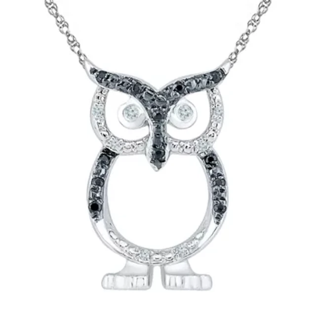Owl Womens Diamond Accent Natural Black Diamond Sterling Silver 18 Inch Pendant Necklace