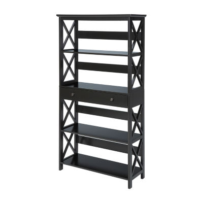 Add both function and style to an otherwise unused corner with the Oxford 5 tier corner bookcase. Featuring an open space that provides 5 spacious shelves for decoration collections art and books. Available in multiple finishes, with a simple elegant, crossed X inch design, this piece can transform any space into something truly beautiful. Crafted for durability this piece will quickly become a staple in your home. Look for other items from the Oxford Collection sold separately.