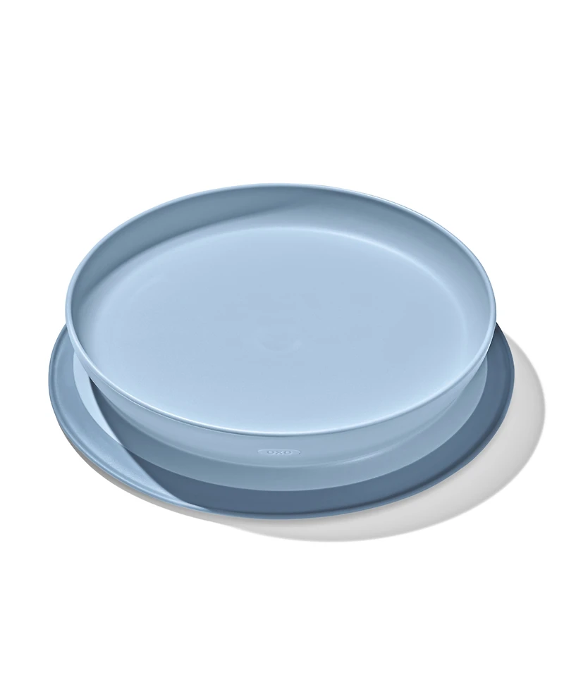 Cut down on mealtime messes with the Oxo Tot stick stay suction plate. The plate features a silicone base that sticks surfaces until mealtime is over, preventing sliding, slipping and tipping. A parent-friendly opening makes removing the plate simple for adults, but tough for kids. Tall, curved side walls allow for easy scooping and encourage self-feeding. When your child is finished, twist the plate and base apart for quick cleaning in the dishwasher.