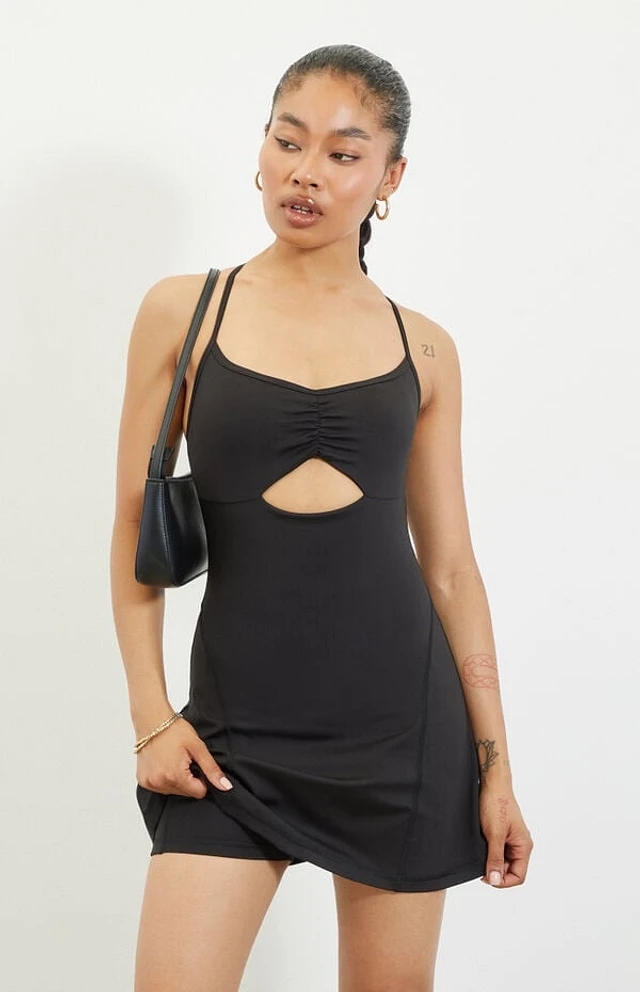 PAC 1980 WHISPER Active Pleated Drop V Waist Mini Dress