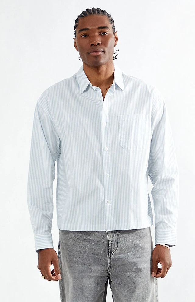 Pacsun Blue Drew Striped Long Sleeve Button Down Shirt