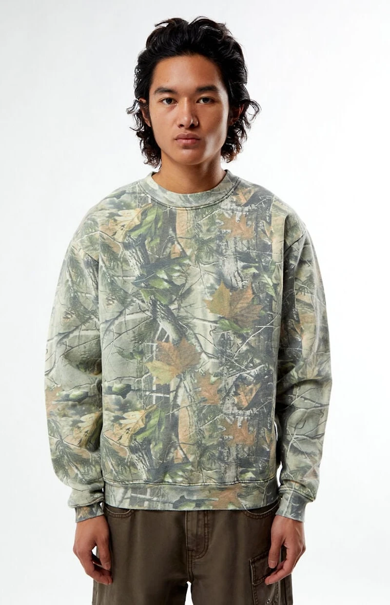 The Camo Crew Neck Sweatshirt from PacSun adds a bold touch to your casual wardrobe. It features a camo print, long sleeves with dropped shoulders, a crew neckline, and ribbed cuffs and hem making it the perfect choice for a trendy and comfortable look.