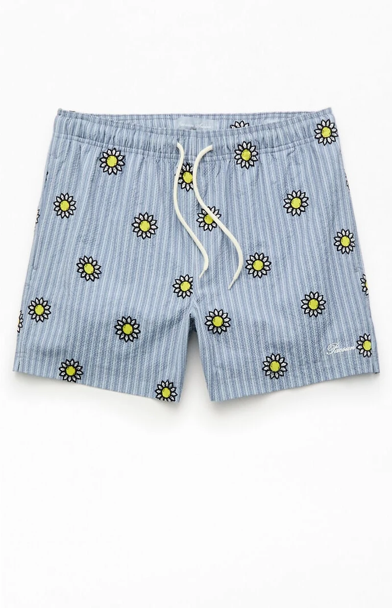 Pacsun Daisy Striped Seersucker 5" Swim Trunks