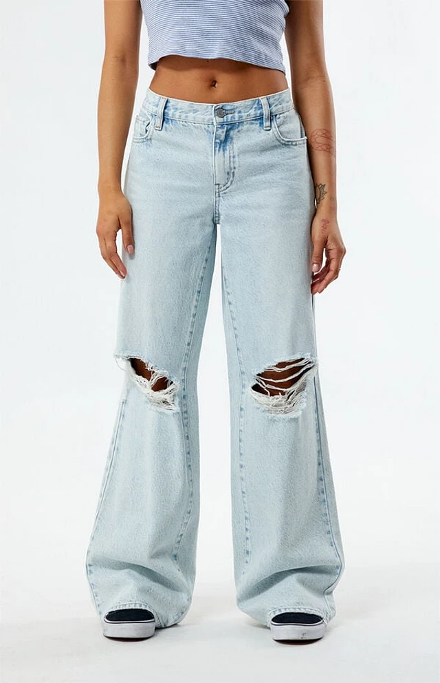 Pacsun Eco Light Indigo Ripped Low Rise Baggy Jeans