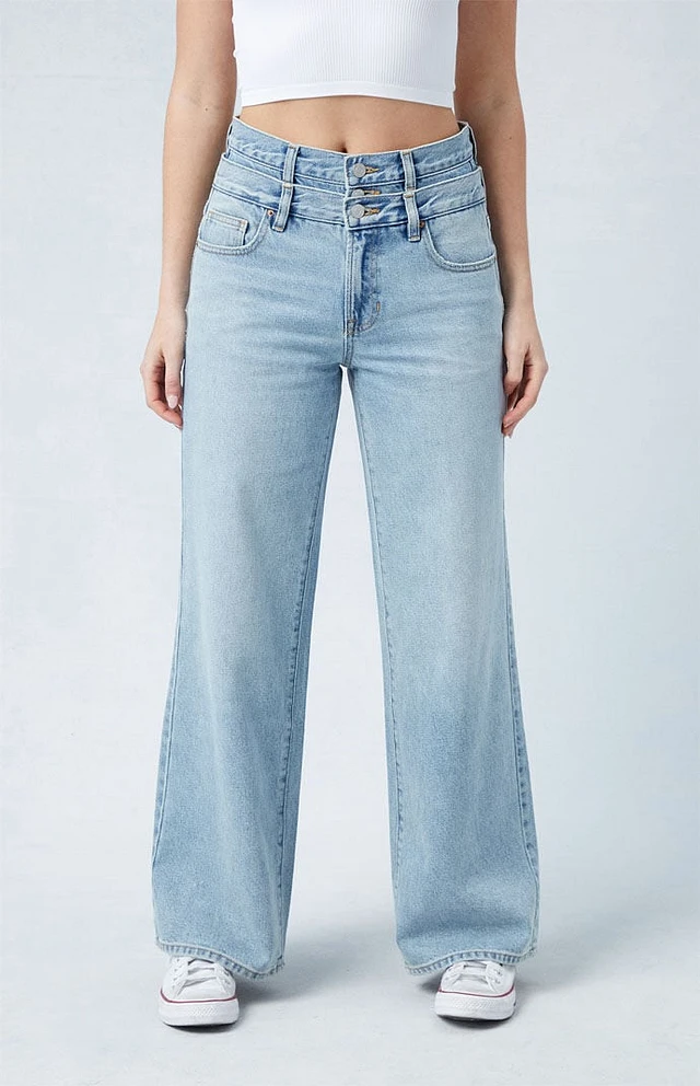 PacSun Eco Medium Indigo Double Waistband Mid Rise Baggy Jeans