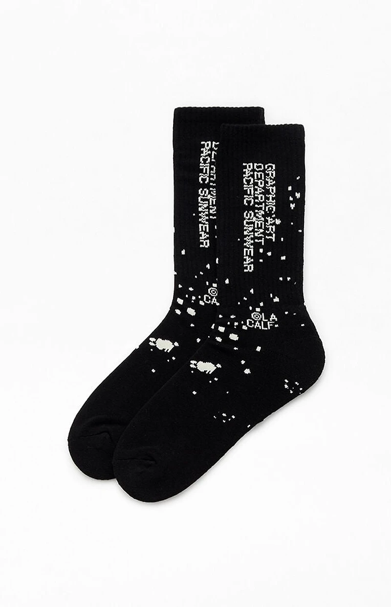 Show off an artistic addition to your look with the Graphic Art Crew Socks from PacSun. These comfortable crew socks have a soft ribbed fabrication and a barbed wire jacquard graphic at the ankle.