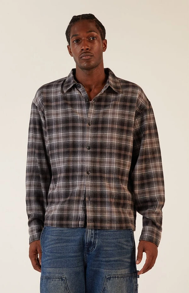 Pacsun Tan & Black Plaid Long Sleeve Flannel Shirt