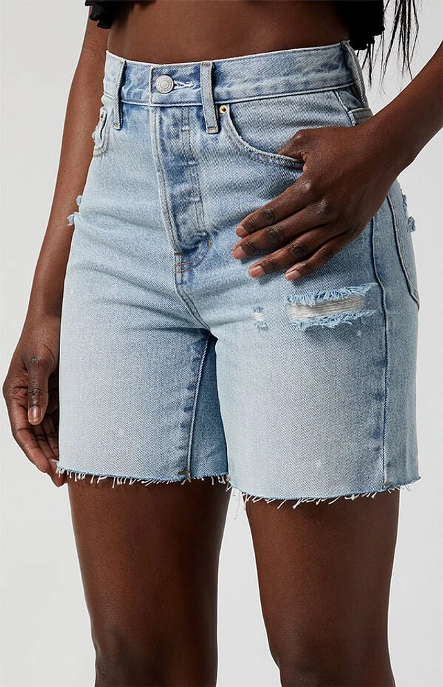 Pacsun Light Indigo Raw Cut Denim Mom Shorts