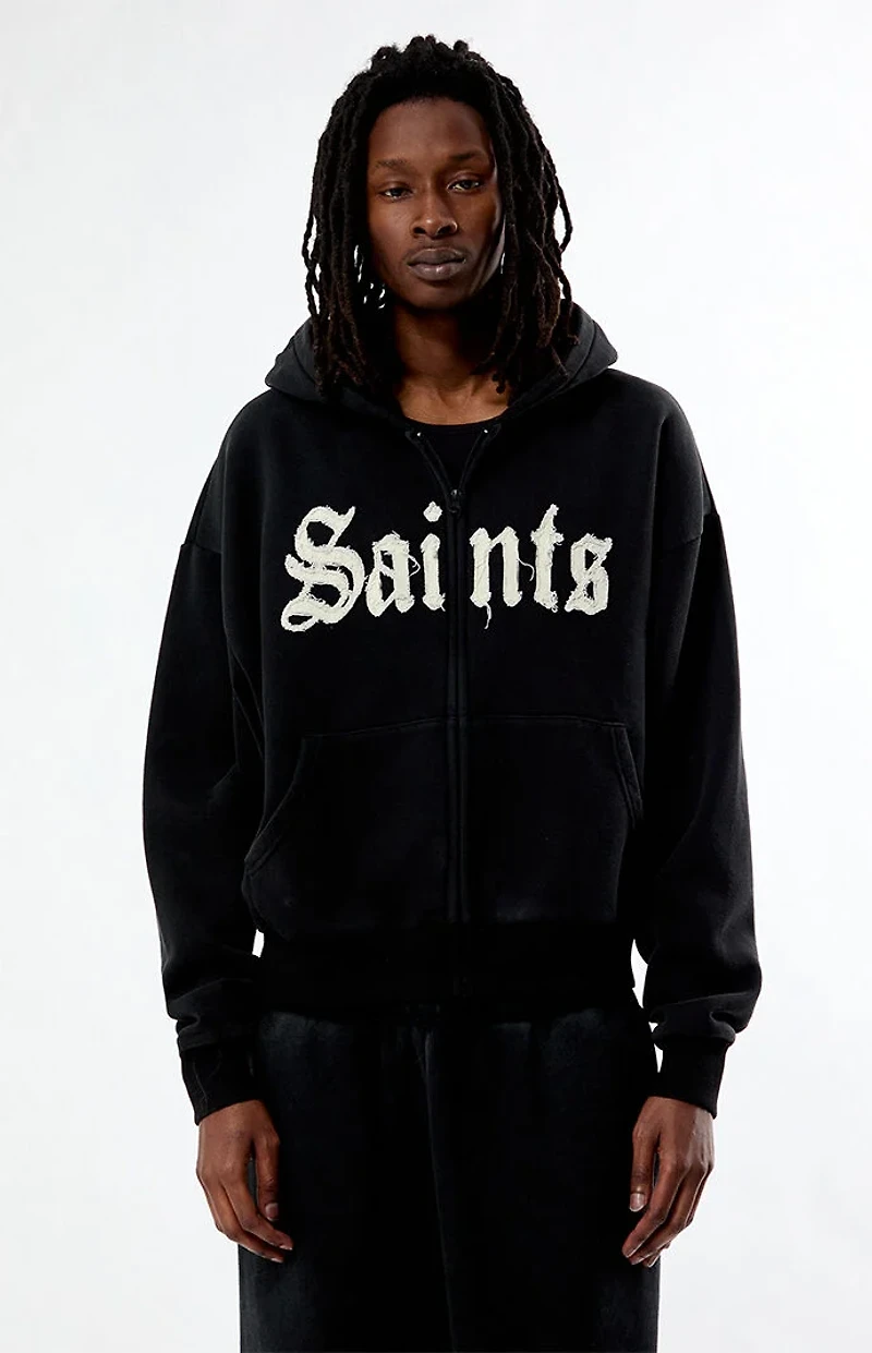 Pacsun Saints Raw Applique Cropped Full Zip Hoodie