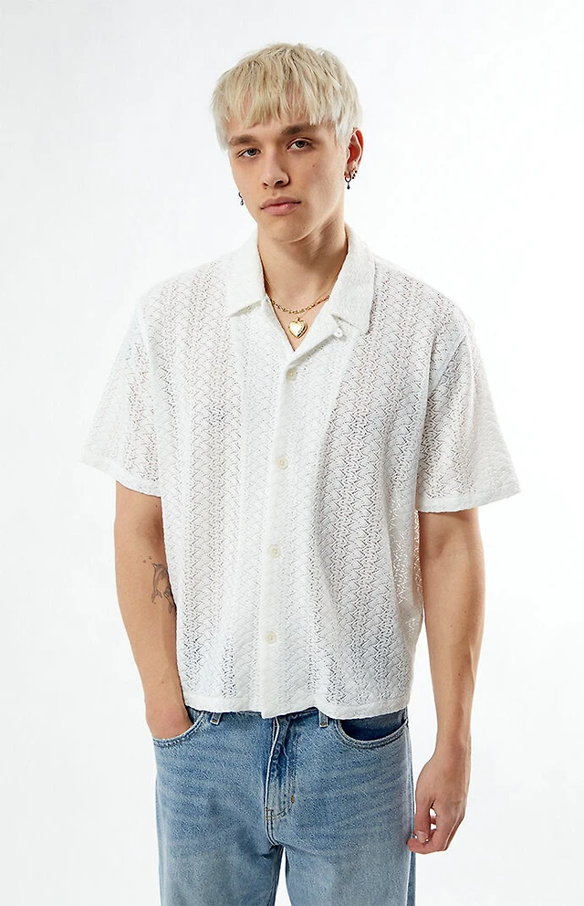 Pacsun White Lance Swirl Knit Oversized Camp Shirt