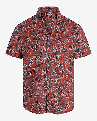 Leaf Print Cotton Stretch Short Sleeve Shirt