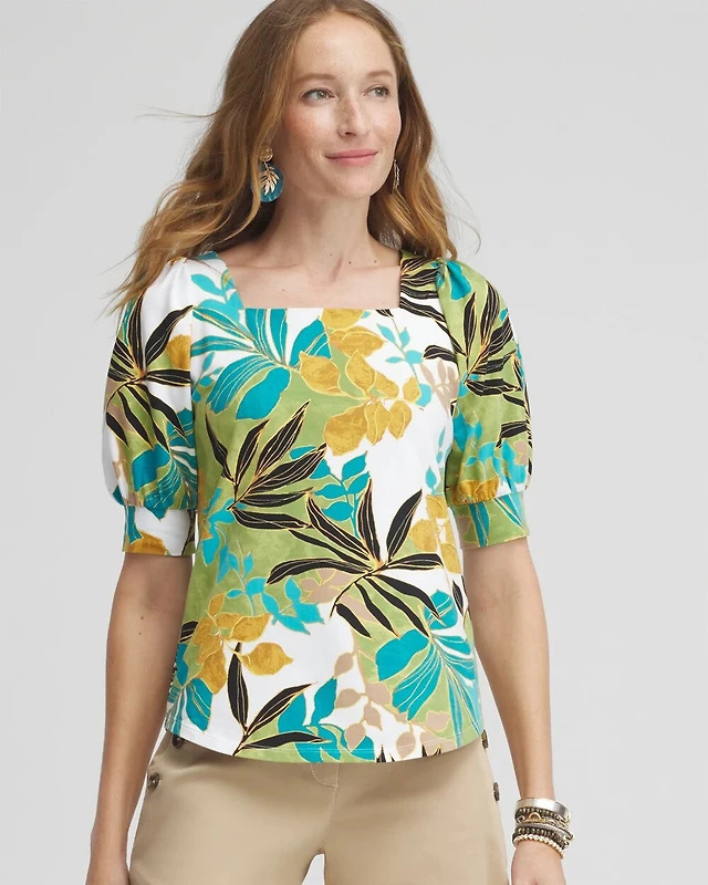 Kenneth Cole Women's Printed Fold-Over Square Neck Top